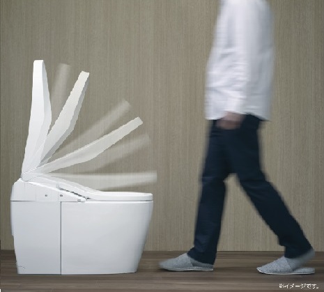 Nắp bồn cầu tự động đóng mở khi phát hiện chuyển động của con người. Bạn không cần phải cúi xuống để mở và đóng nó, tính năng này rất tiện cho những gia đình có người lớn tuổi bị đau lưng.