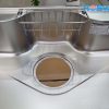 Mặt dưới của chậu được trang bị hệ thống chống ồn, giảm đáng kể tiếng nước va đập vào inox. Điều này giúp không gian bếp luôn yên tĩnh, dễ chịu, đặc biệt phù hợp với các gia đình sống trong căn hộ chung cư.