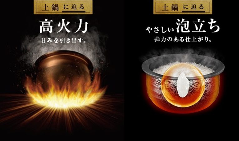 • Đun nóng cảm ứng IH (Induction heating), gạo chín từ trong ra ngoài nên rất ngon.