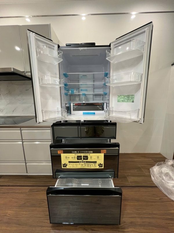 Hitachi R-HXCC62V sở hữu thiết kế 6 ngăn hiện đại, mặt gương cao cấp chống bám vân tay, tạo điểm nhấn tinh tế cho gian bếp.